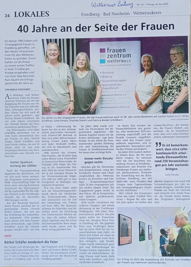 Quelle: Wetterauer Zeitung vom 16.05.2025